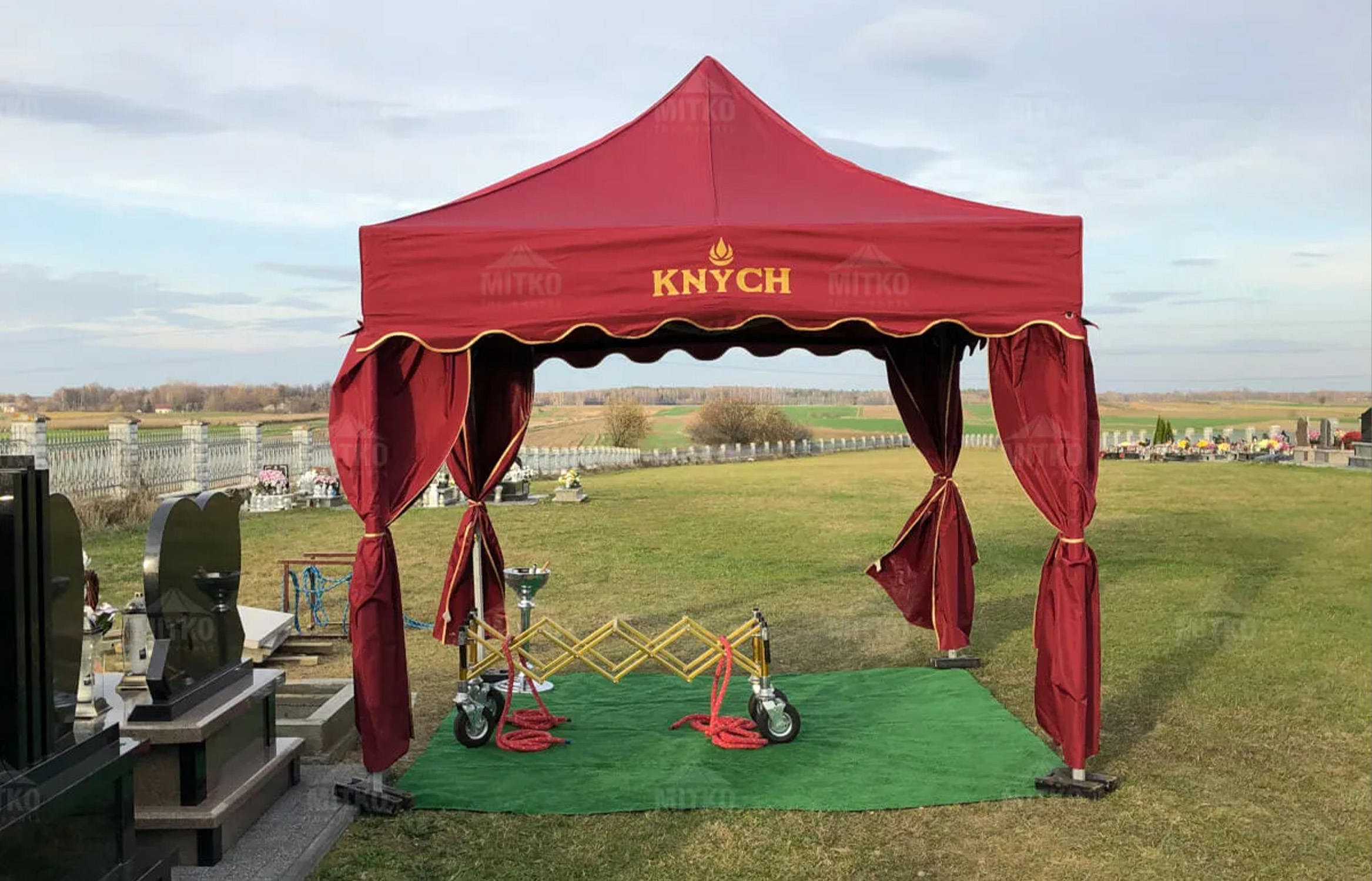 Que ce soit pour un salon, un évènement extérieur, un marché ou une cérémonie funéraire, Easytent propose des supports robustes et personnalisables.
