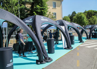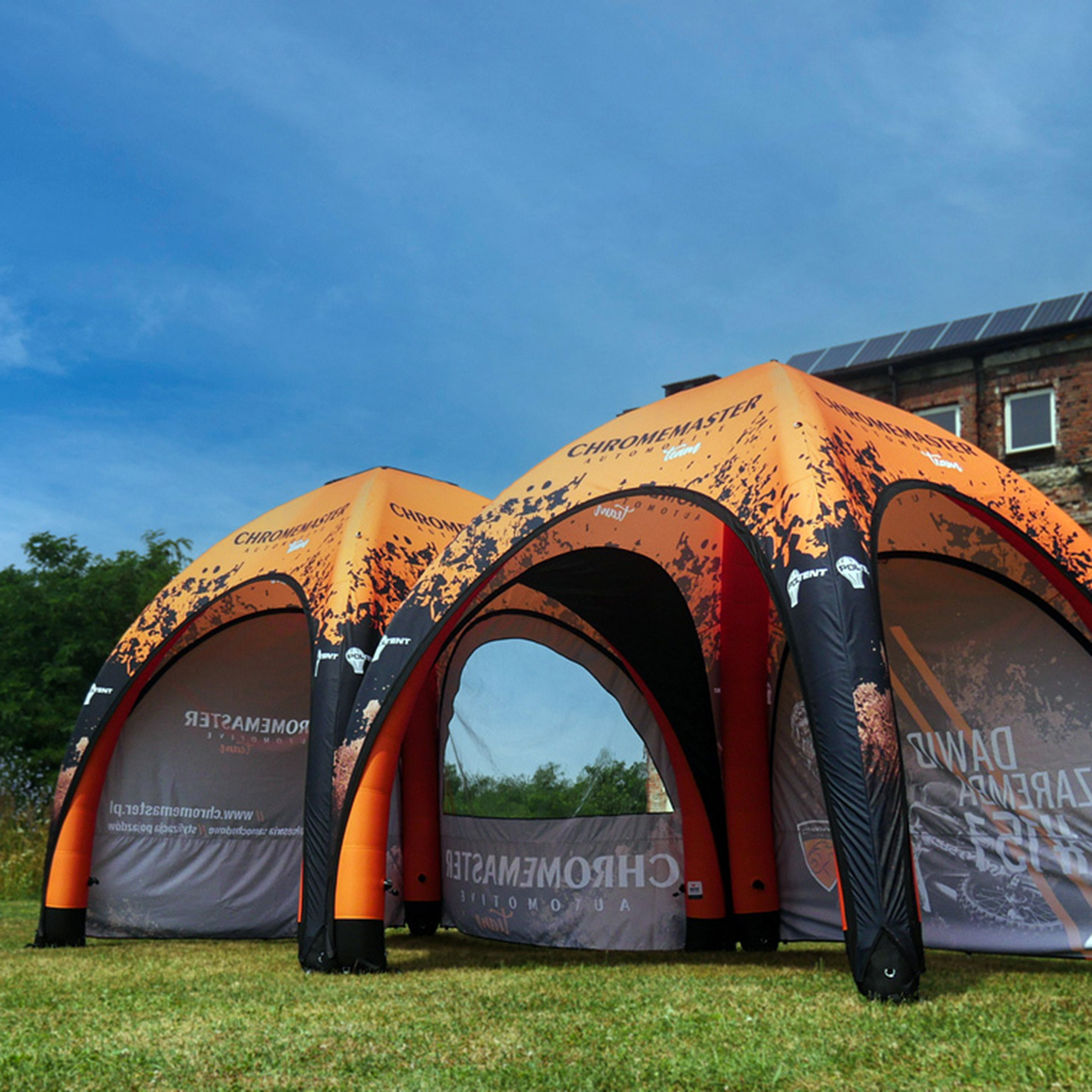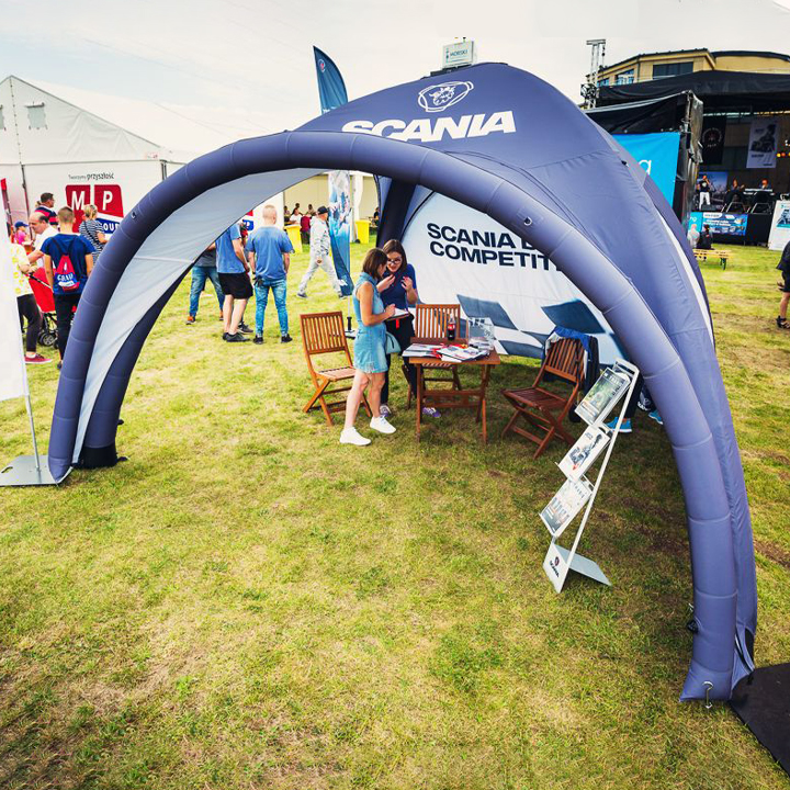 Les VENTO® Tent sont des tentes gonflables avec 4 modules remplis d’air, recouverts d’un tissu polyester personnalisables à votre image de marque. L’habillage comprend un toit et des parois, fixés au toit à l’aide de fermetures zippées pratiques, facilitant le montage et le démontage.