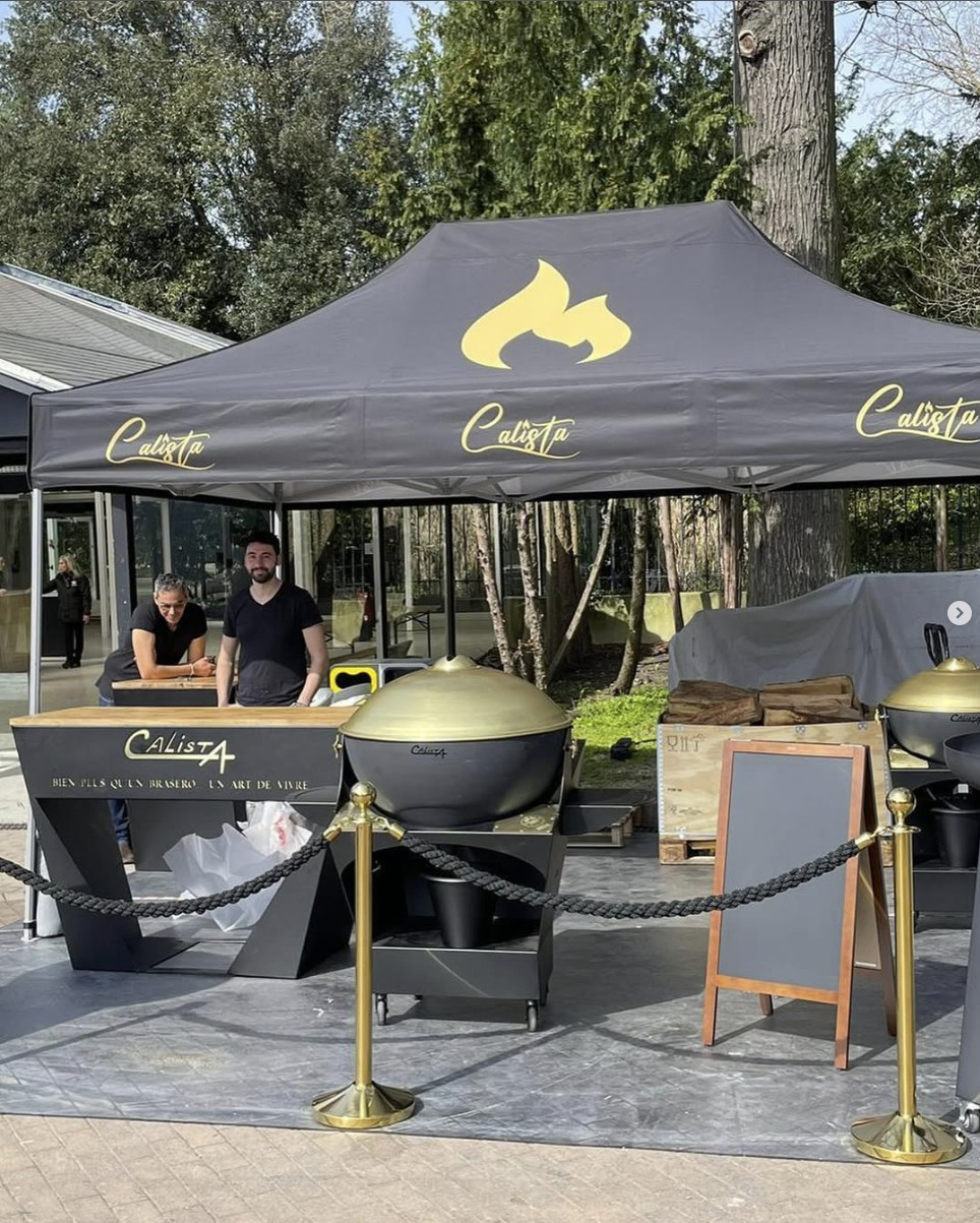 Tentes pliantes Caliste Tente pliantes en impression total en sublimation pour la société Calista, fabricant Français de barbecue